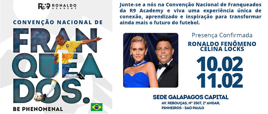 Fundada pelo lendário Ronaldo Fenômeno, a Ronaldo Academy é mais do que uma franquia de academias de futebol — é uma oportunidade de empreender em um dos setores que mais crescem no país, com o suporte da metodologia exclusiva BEPHENOMENAL, desenvolvida pela equipe da Ronaldo Academy.